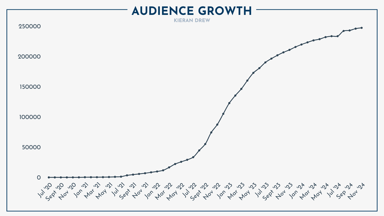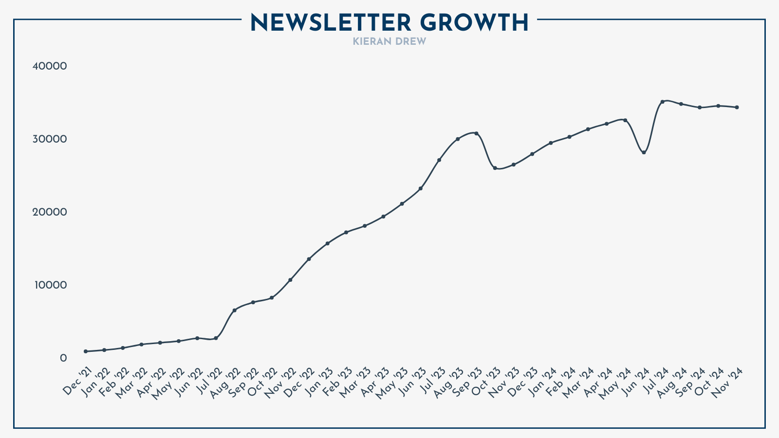 My top priority is to continue improving as a writer. It’s the best way I can serve you. I also plan on tightening up my business. I’ve been building scrappy and it’s an absolute shitshow behind the scenes. I haven’t done an ounce of optimization. We’re working on a metric dashboard and I’ll be running monthly experiments in 2025.