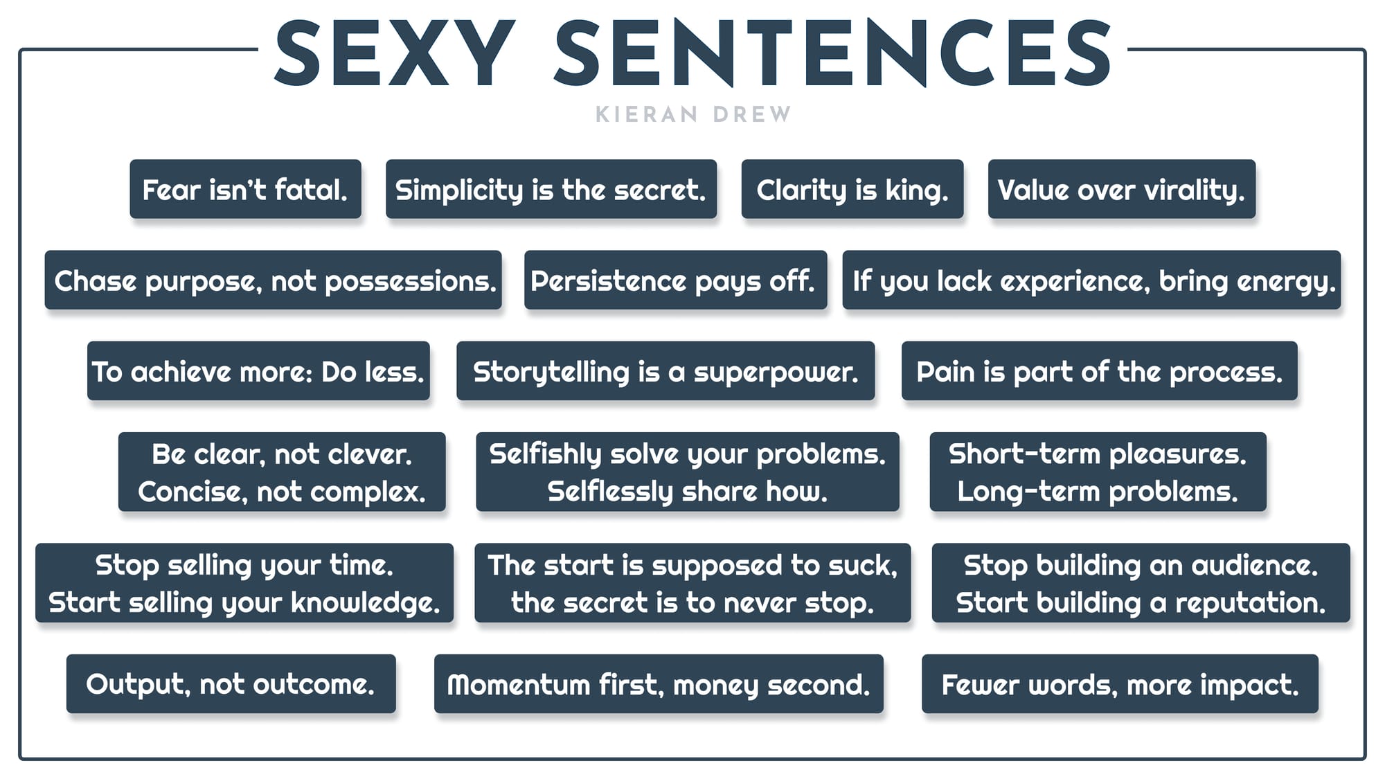 I heard Morgan Housel say recently that people don’t remember books; they remember sentences. This goes to show that quality writing isn’t about length. So long as you don’t commit too many sins, it’s not about grammar, either.