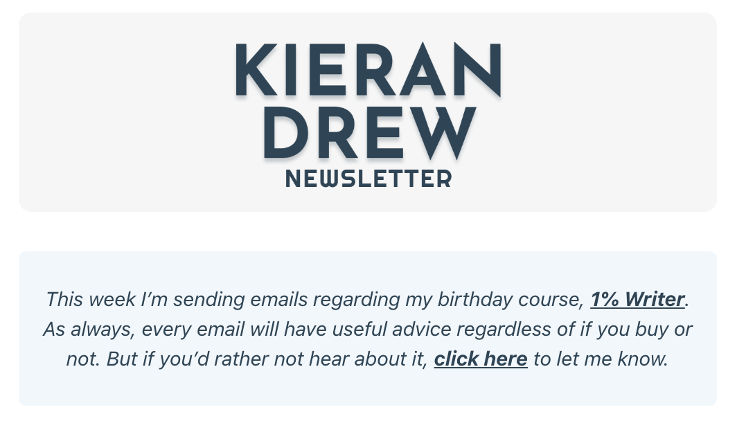 I offered an ‘opt-out’ for the launch at the top of each email: