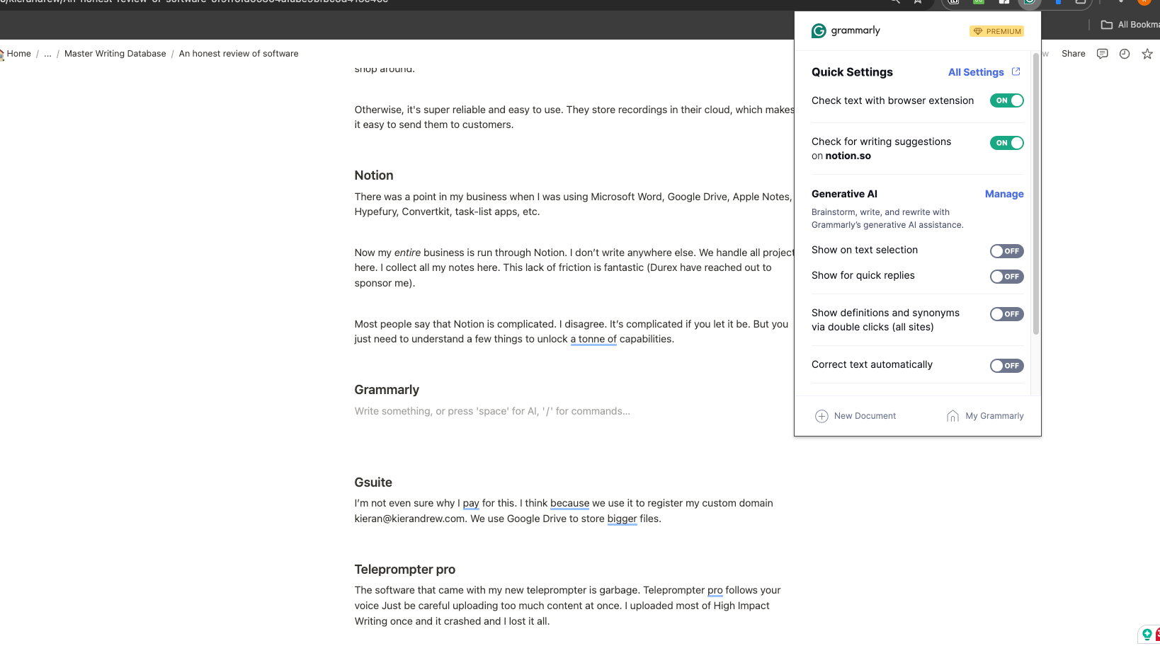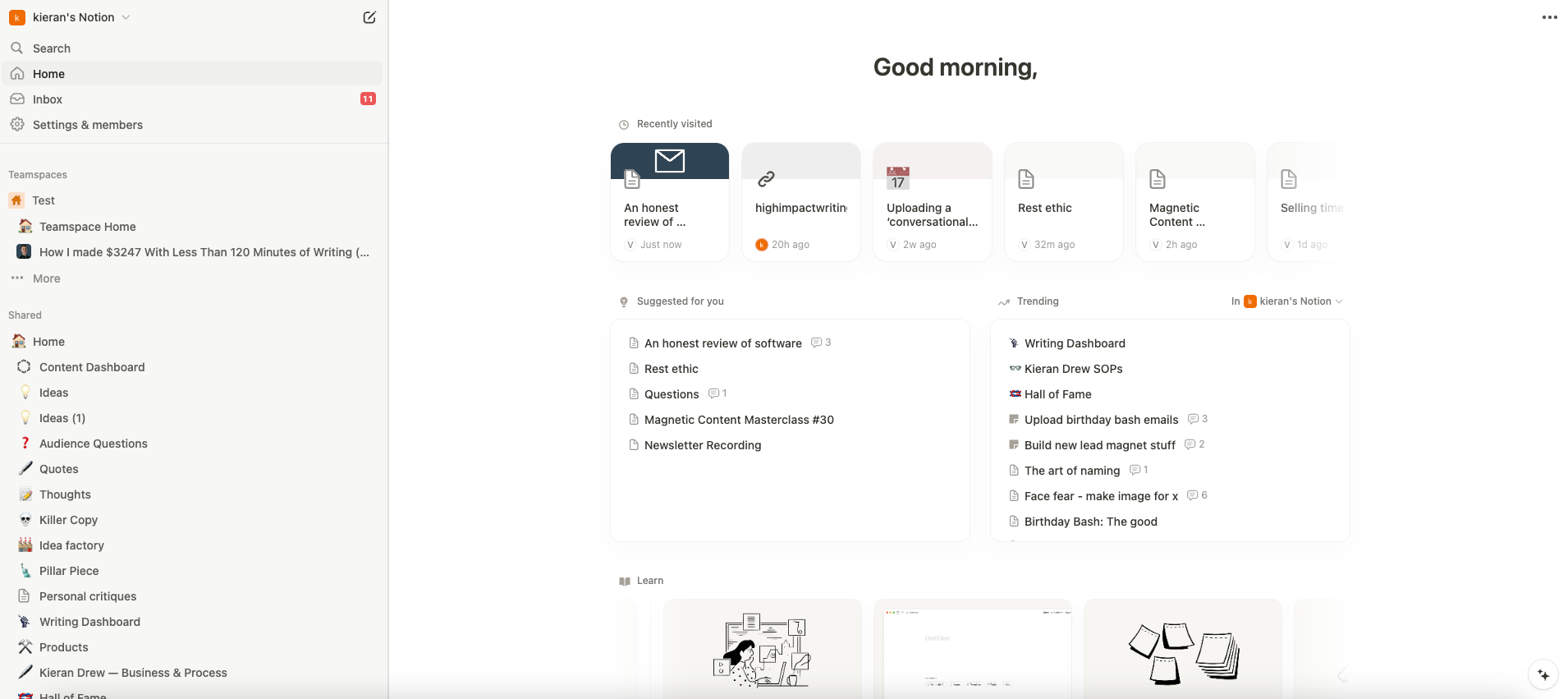 Now my entire business is run through Notion. I don’t write anywhere else. We handle all projects here. I collect all my notes here. This lack of friction is fantastic (Durex have reached out to sponsor me).