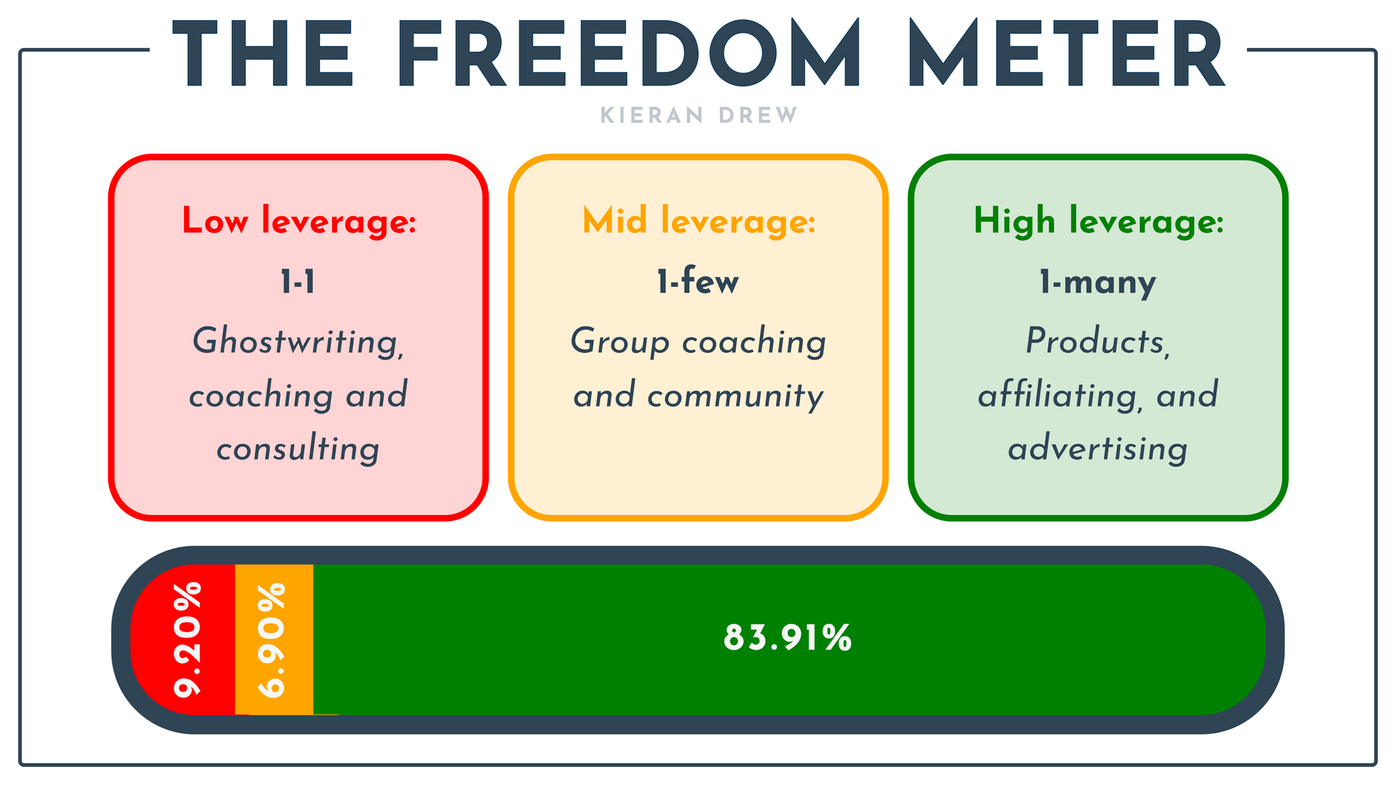 But one reason I became an entrepreneur was to disconnect my time from money, so I set a goal to reduce my ‘low leverage’ income to below 10% by the end of 2023 (it was 35% in January).