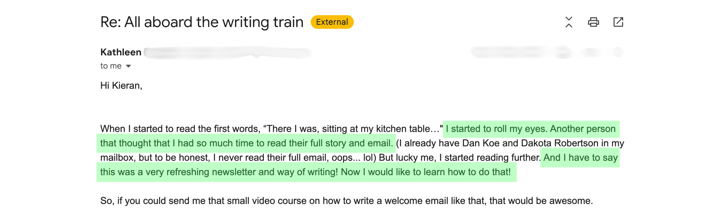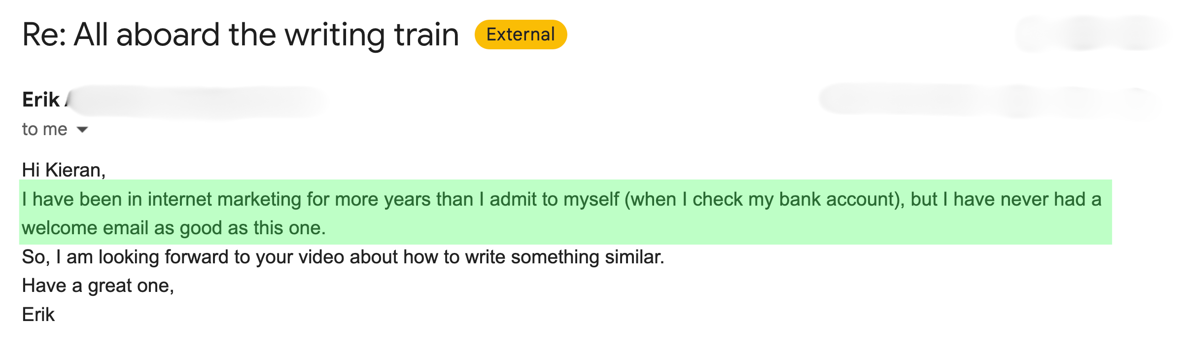 I’ve read maybe 5 good welcome emails. The rest were bland and forgettable. Which is a problem for most people, but an opportunity for me and you.